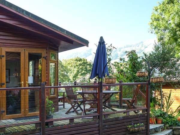 Outside Dickens lodge there are two designated parking places (off-road) as well as a private decked area with furniture and a hot tub. Please note there are four external steps to access the property
