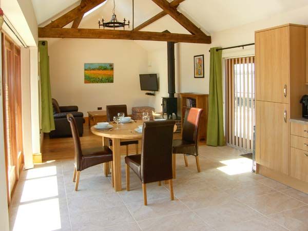 The open plan living area is wonderful and cosy, with a kitchen, dining area and sitting area, complete with a woodburning stove, perfect for cosy evenings in when the weather is less than ideal.