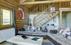 There are two bathrooms in the lodge. The main family bathroom is located on the mezzanine floor and is furnished with a bath, WC, washbasin, mirror and shaver point. The second bathroom is located on the ground floor and is furnished with a walk-in shower cubicle, washbasin, mirror and shaver point.